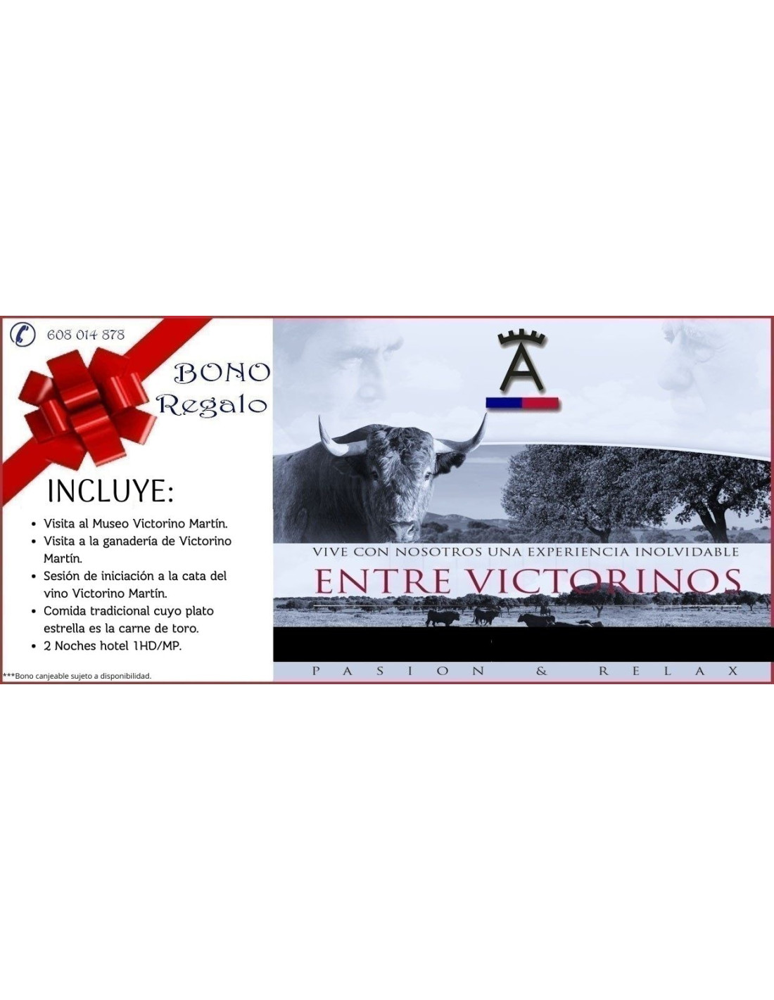 ¡Vive con nosotros una Autentica Experiencia Entre Victorinos! Bono regalo "Entre Victorinos" Pasión & Relax